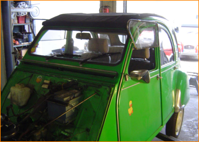 Der Citroen 2 CV (französisch deux chevaux)in Deutschland üblicherweise Ente un in der Schweiz Döschwo genannt, war ein populäres Modell des Automobilherstellers Citroen mit einem luftgekühlten Zweizylinder-Viertakt-Boxermotor und Frontantrieb.